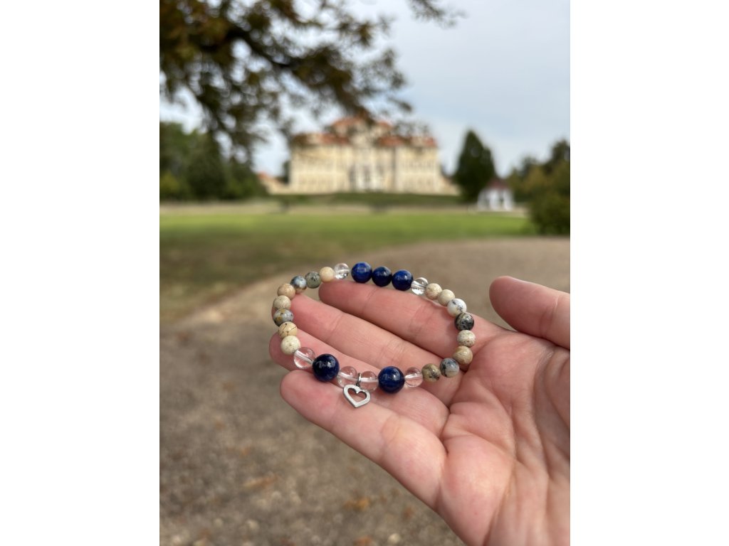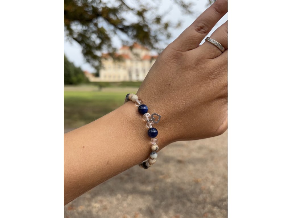 Náramek z jaspisu, lápis lazuli a křišťálu